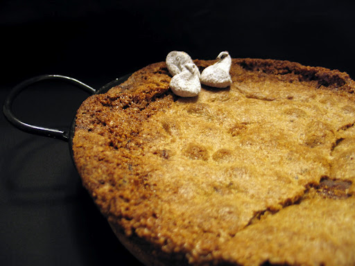 Aún no me había quitado la legaña del ojo y encendido el ordenador, cuando me vi arrastrada por una fiebre que dio paso a una epidemia twittera: la #MegaGalleta. @pintxo instaba a través de su blog, El monstruo de las galletas, a los twitteros a preparar un cookie de avena y chocolate gigante basándose en una misma receta: Whole wheat chocolate chip skillet cookie, del blog 101 cookbooks.