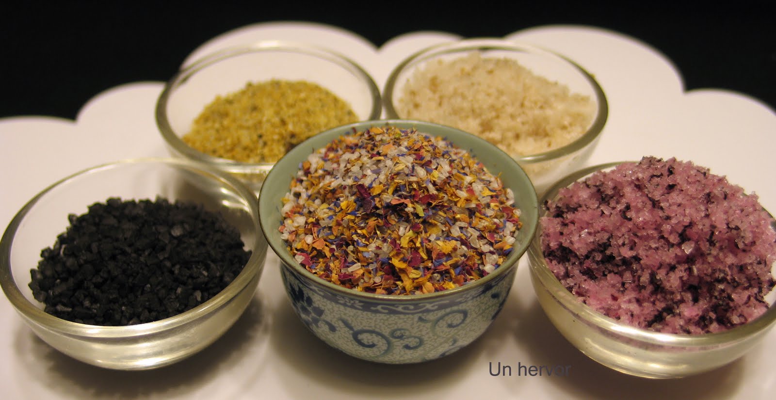 En el puesto El lloc d’enmig, dónde el paciente tendero se pasa el día explicando cómo preparar un curry o con qué va mejor cada sal, me decidí por una sal ahumada vikinga, una sal de shisho –que me cuenta tiene una acidez que hace prescindible el limón o vinagre en las ensaladas- y una volcánica negra.