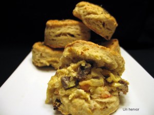 Son ideales acompañados por un suave queso en crema, unas rodajas de tomate con aceite de oliva o por un sencillo revuelto hecho con el huevo sobrante de esta misma receta y las dos cucharadas de relleno de los calabacines del post de la pasada semana, a los que añadí unos daditos de butifarrón, pero que no haría ascos a jamón, chorizo o cualquier embutido.