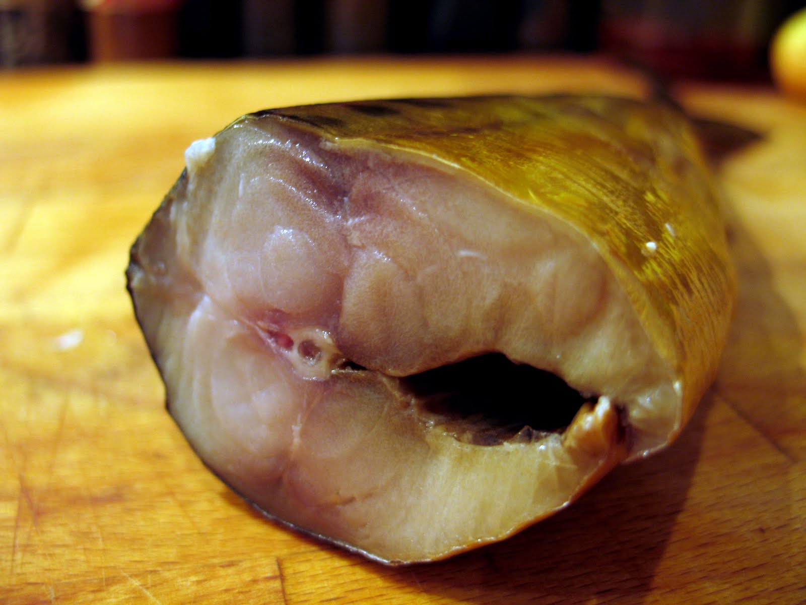 Venden los diferentes pescados al peso, y aunque el mayor problema es adivinar qué especie está uno comprando, la intuición visual no suele fallar. Junto a retales de la parte más grasa del salmón –la del vientre-, suelo encontrar un pescado blanquecino muy sabroso -cuyo de nombre soy incapaz de reproducir- y mi favorito: la caballa.