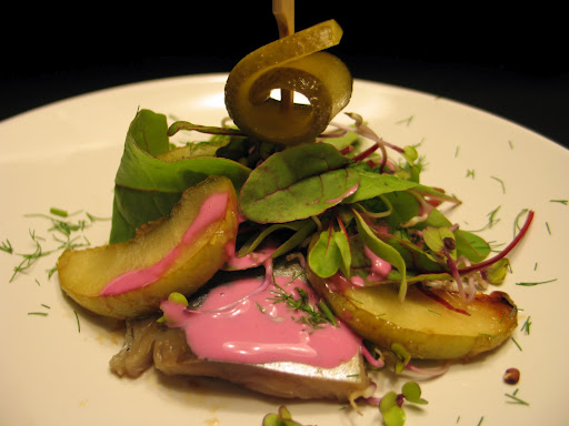 Cuando voy de visita, mi abuela americana me recibe con un gran perol rebosante de una ensalada -que sabe me encanta- a base de arenques, pepinillos en vinagre al estilo alemán, manzana y remolacha, todo cortado a daditos minúsculos y aliñado con mayonesa y clavo.