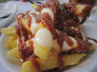 Sin querer reiniciar el inacabable debate sobre las mejores patatas bravas de Barcelona, he de decir que –a mi juicio- las he encontrado. Poniéndonos tikis-mikis podríamos decir que no son exactamente unas bravas, pues, en vez de cortadas a cachuelos, lo están a modo de patatas fritas, pero al probarlas se olvidan todos los prejuicios, al encontrar una patata crujiente que sabe a patata en perfecta armonía con un suave alioli y una salsa picante en el que se adivinan trazas de tomates y ajos asados.