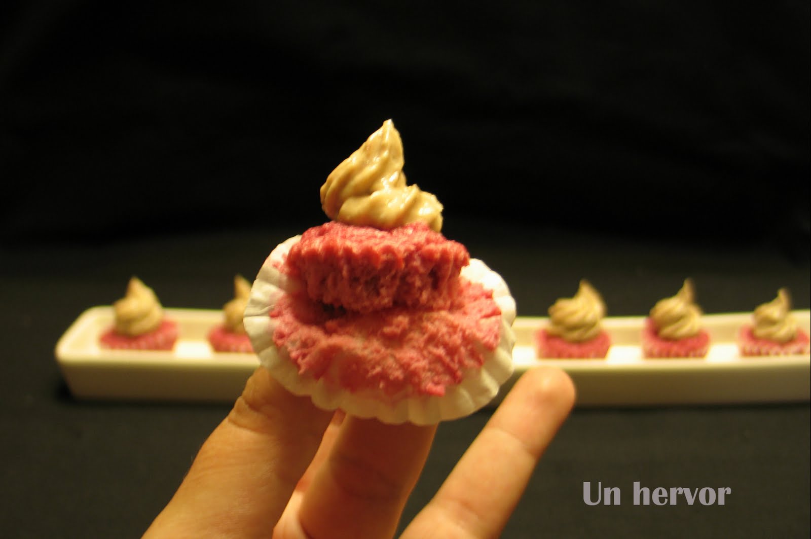 Así nacieron estos Pink Velvet cupcakes con crema de anchoas, no por ello menos queridos… es decir buenos.