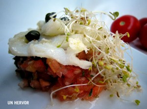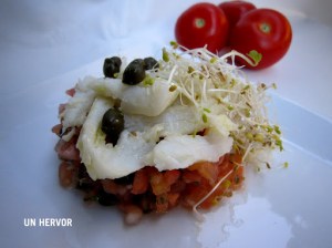 Tartar de tomate con bacalao