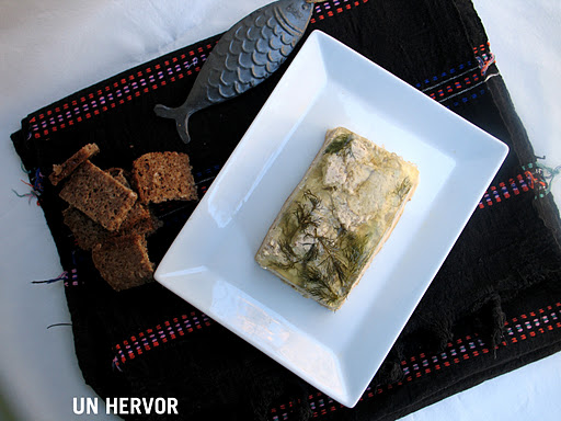 Precisamente, de un caldo de cabeza de rape ha nacido este paté. La pescadera me regaló un enorme hígado que alguien había rechazado, y mientras, rescataba las mollitas de la cabeza del rape, se me ocurrió que un paté podía ser una buena idea.