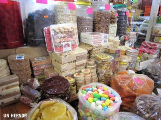 Puestos de dulces variados, como mazapanes en forma de frutitas en miniatura, obleas de vivos colores con pipas de calabaza pegadas con cajeta -como un dulce de leche-, gorditas dulces, elotes –mazorcas- que embadurnan bien de mayonesa o picante en salsa o en polvo… ¡imposible probarlo todo sin caer enfermo de un empacho!