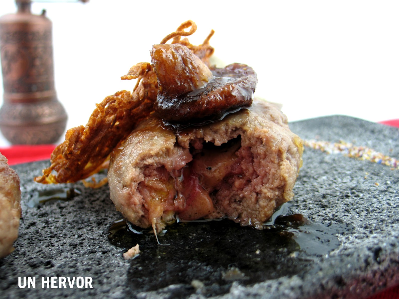 Hace unas semanas encontré un tarro de foie micuit en la nevera tras un entrecot y se me ocurrió hacer unos filetes rusos rellenos.