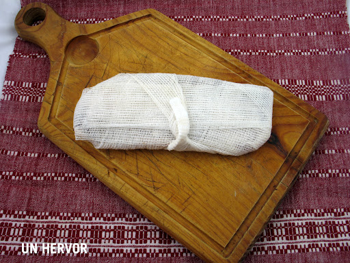 Lo volvemos a introducir en el recipiente de cristal, lo tapamos bien y lo dejamos curar unos 20 días si lo queremos un poco tierno o unas semanas más si, por el contrario, lo queremos más curado.