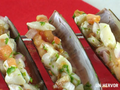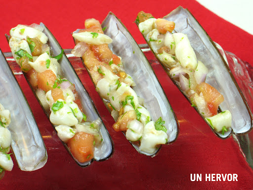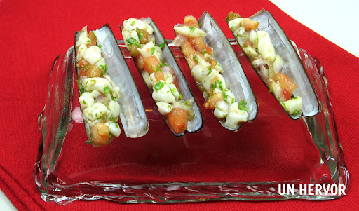 Podemos servir el ceviche utilizando las propias conchas, pero también en unas cucharas.