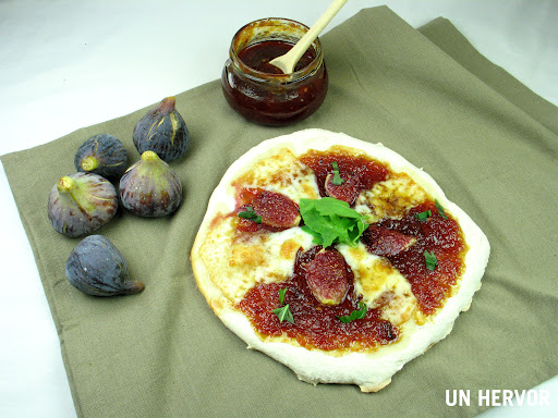 Esta vez he utilizado una mermelada de tomate casera hecha por mi tía Elisa para sus nietos, aunque la primera prueba de pizza con mermelada la preparé con una jalea de higos de mis tíos Jose y Nela –sí, un poco de peloteo para que me sigan surtiendo-.