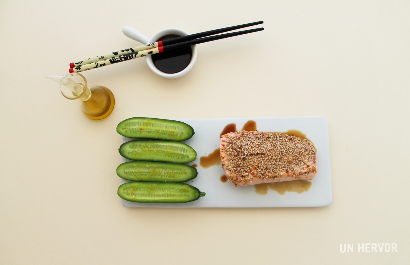 El deseo fue más poderoso, así que acabé tirando de vino blanco, un poco de aceite de sésamo y ya que estábamos, decidí sustituir el azúcar por la miel. La verdad es que disfruté muchísimo del tataki, es más, aún me relamo los bigotes.