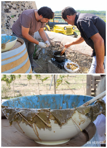 Como no, estas dos últimas junto al Forn Terrasa fueron las que orquestaron el menú inspirados por el entorno y en base a productos de temporada como tomates, higos, granadas, pimientos…, de Tomàtigues i Melons o de la propia viña.