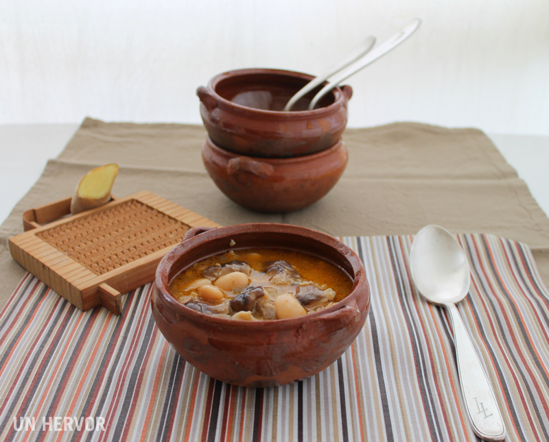 Regresando en el avión, visualicé cómo se fusionaban unas shiitake y medio bote de alubias que tenía en la nevera hasta conformar una sopita espesa tan reconfortante como la que había probado.
